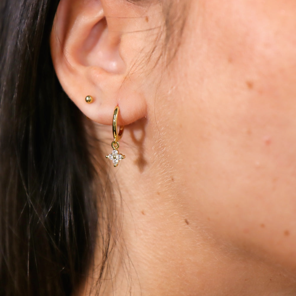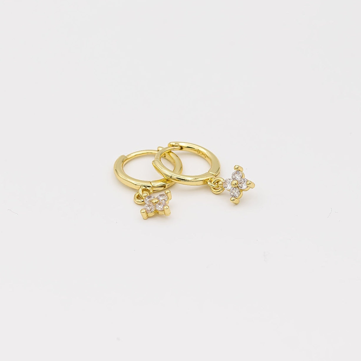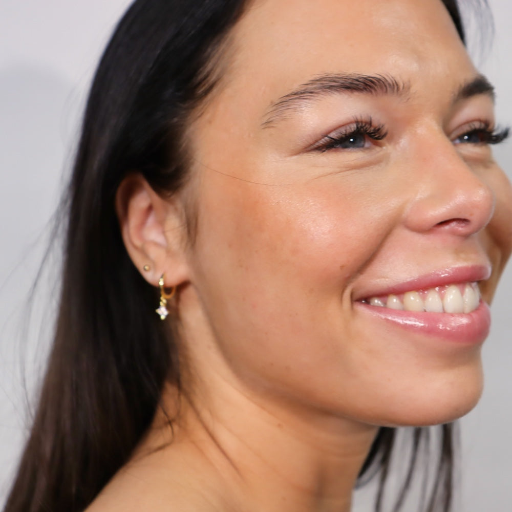 These mini hoops feature a delicate zirconia flower charm that adds a soft touch of light. Refined, luminous, and perfect for everyday wear.