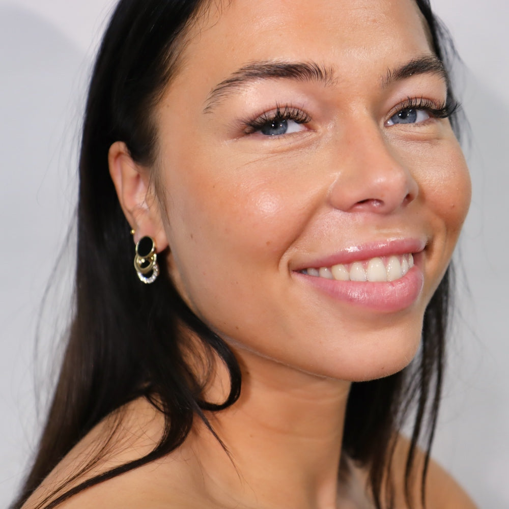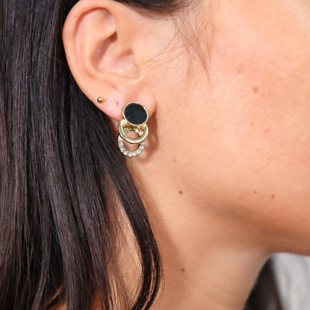 Interlaced circles combining deep black and radiant shine. A chic, sophisticated piece — perfect for elevating your evening looks.