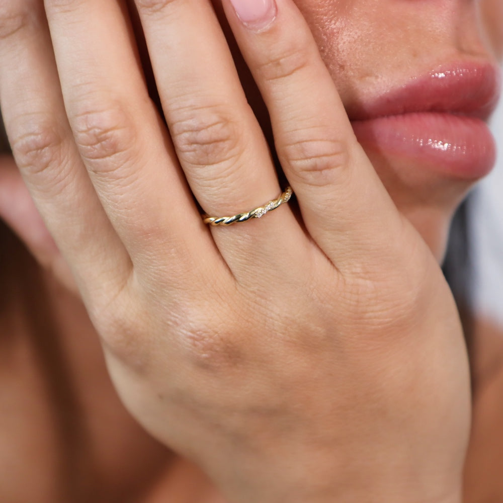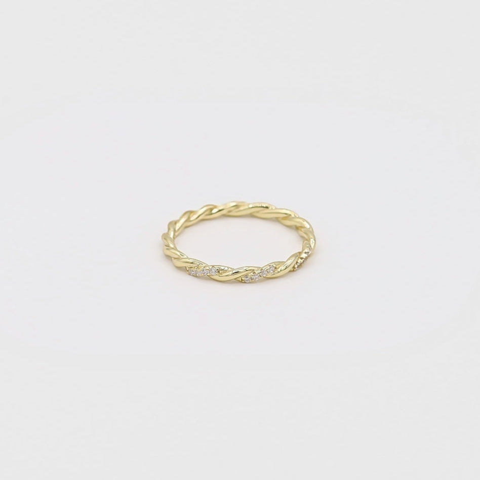 Crafted in stainless steel with a polished finish, featuring braided details accented with zirconia — lightweight with refined texture.