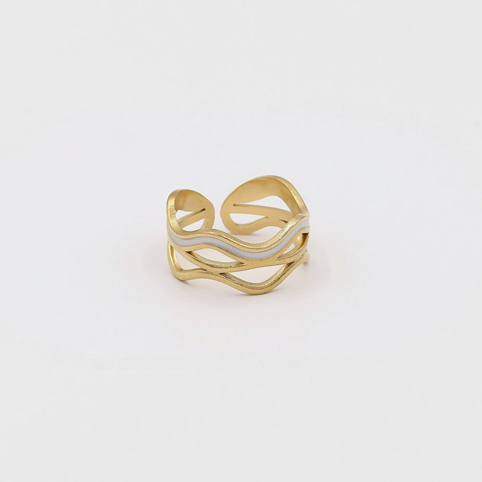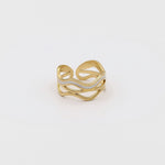 Crafted in stainless steel with a polished finish, featuring an open design formed by smooth wavy lines — lightweight, fluid elegance.